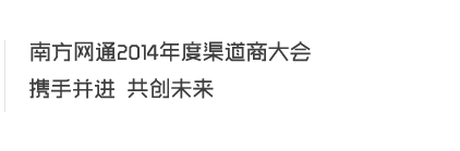 2014年12月12日,南方网通在广东常平隐贤山庄度假村召开了《携手并进,共创未来——南方网通2014年度渠道商大会》,会议总结了2014年南方网通及各地代理商全年的发展并对2015年做出了规划与展望,各代理商都分享了很多自己的经验,使我们所有参会人员都获益良多。
