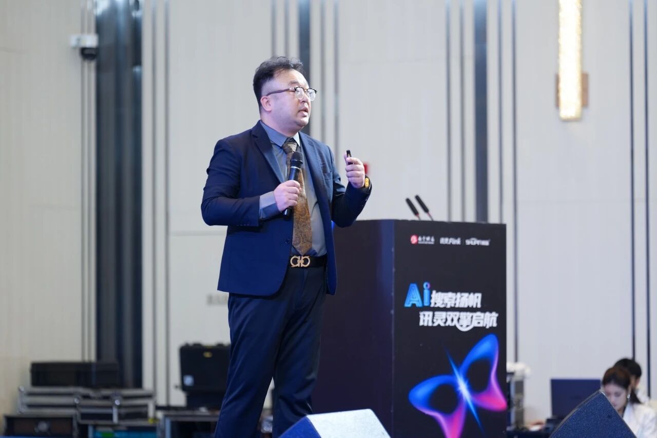 在热烈的掌声中,南方网通集团董事长兼CEO费勇费总登台,带来新品讯灵AI的深度课程分享。围绕“GEO+Agent”核心功能、技术优势及应用场景展开深度讲解。费总结合视频,生动演示了新品在“营销获客精准化、客户响应即时化、办公流程自动化”三大维度的突破性表现。
